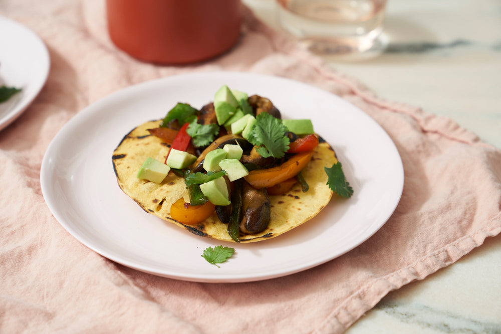 Once tortillas are cooked, assemble your tacos by scooping mushroom mixture onto your tortillas, and layering with avocado and cilantro. Serve with your favorite salsa and enjoy!
